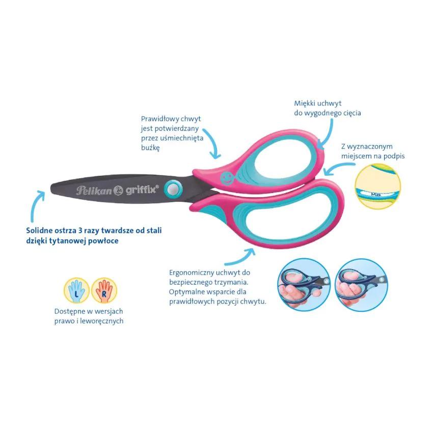 Nożyczki Griffix ergonomiczne 14cm zaokrąglone niebieskie 803502 PELIKAN - nz 3190368