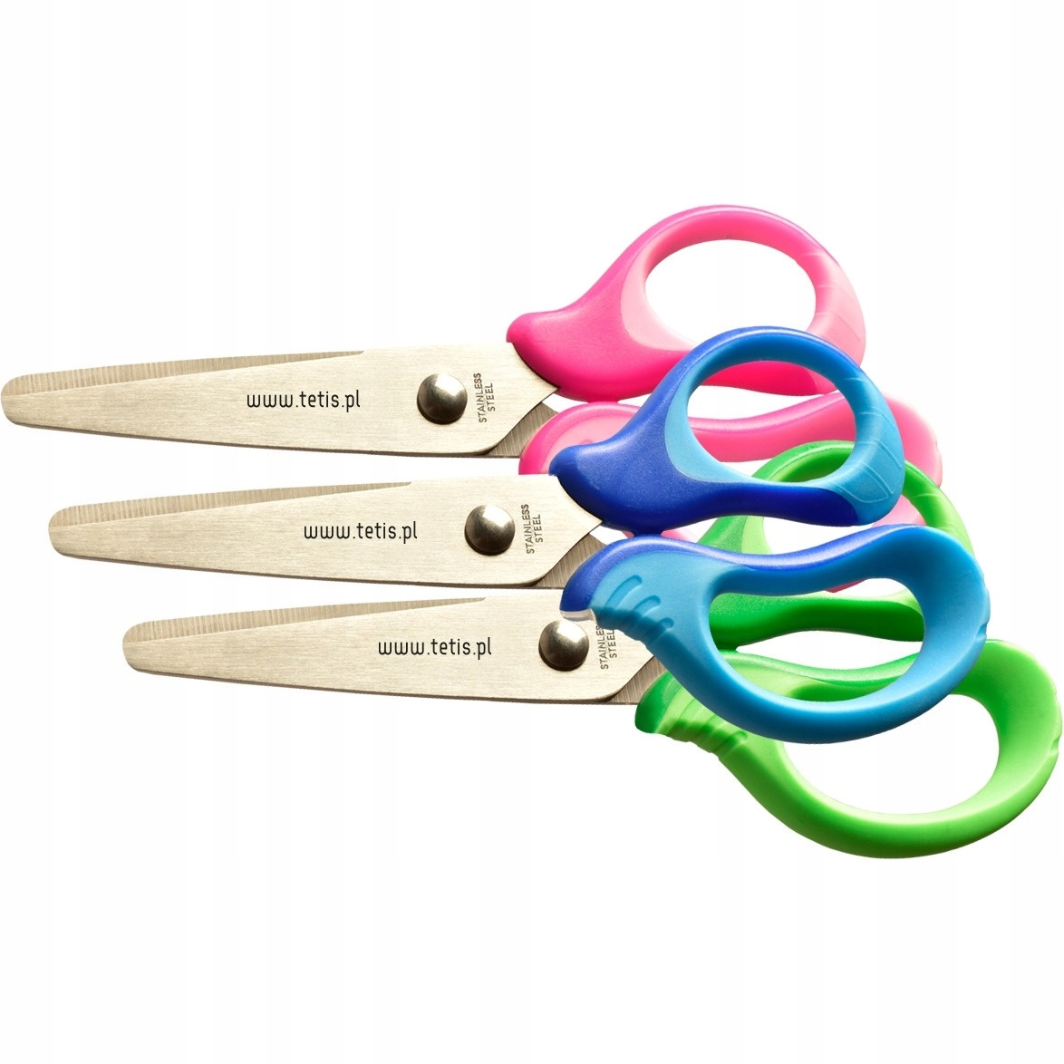 Nozyczki dla dzieci marki TETIS wykonane ze stali nierdzewnej z zaokrąglonymi koncówkami.