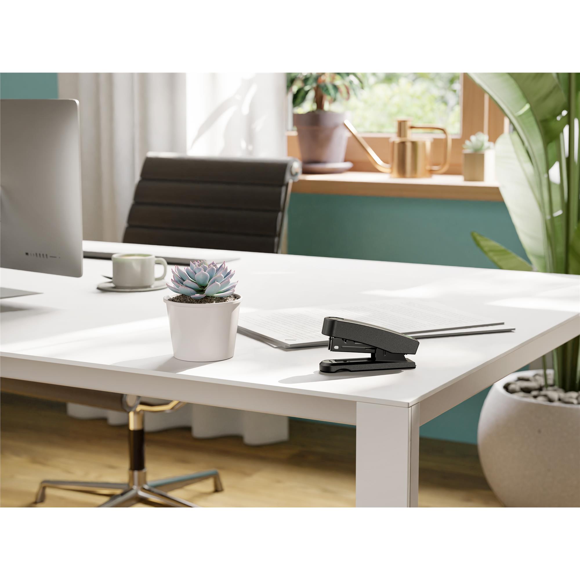 Kompaktowy i trwały zszywacz metalowy z ekologiczną plastikową obudową z recyklatu. Dzięki zintegrowanemu rozszywaczowi oraz systemowi ładowania zszywek od góry jest wygodny i funkcjonalny. Lekka konstrukcja ułatwia użytkowanie, a pojedynczy system prowadzenia zszywek zapewnia precyzyjne zszywanie. W zestawie znajduje się 200 zszywek nr 10, a 10-letnia gwarancja potwierdza niezawodność urządzenia.