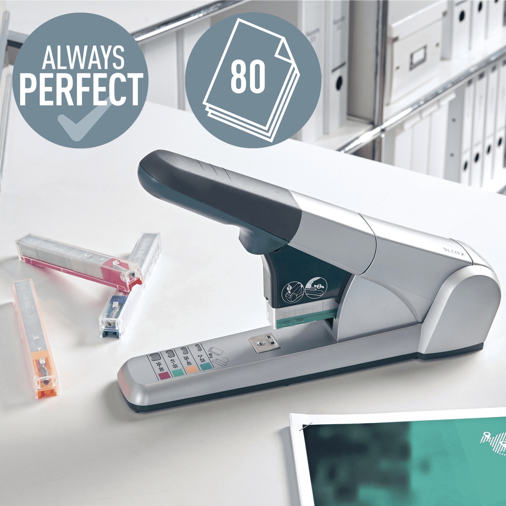Zszywacz kasetowy 5551 LEITZ srebrny 80 kartek 55510084 - zsk0480187