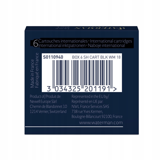 Naboje krótkie WATERMAN (6 sztuk) czarne 2052011 / S0110940 - nak0190055