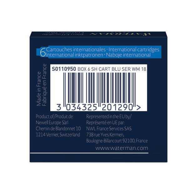 NABOJE KRÓTKIE DO PIÓRA niebieskie 6 sztuk WATERMAN S0110950