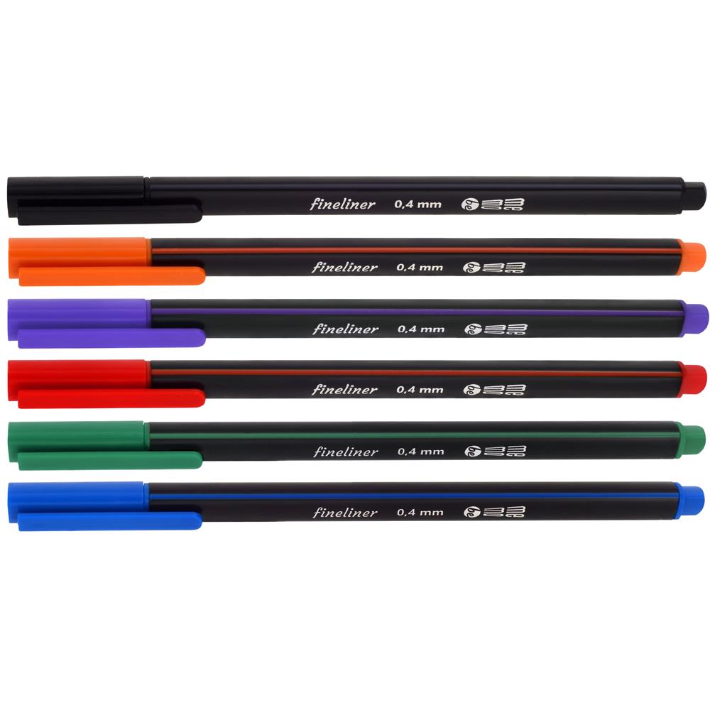 Zestaw cienkopisów MemoBe w 6 kolorach w kartonowym pudełku z eurozawieszką. Cienkopisy z końcówką F o rozmiarze 0,4mm. Obudowa w trójkątnym kształcie ułatwiającym utrzymanie prawidłowego i wygodnego chwytu. Miękka, płynna linia pisania o długości powyżej 800m. Dostępne zestawy: 4, 6 lub 10 kolorów.