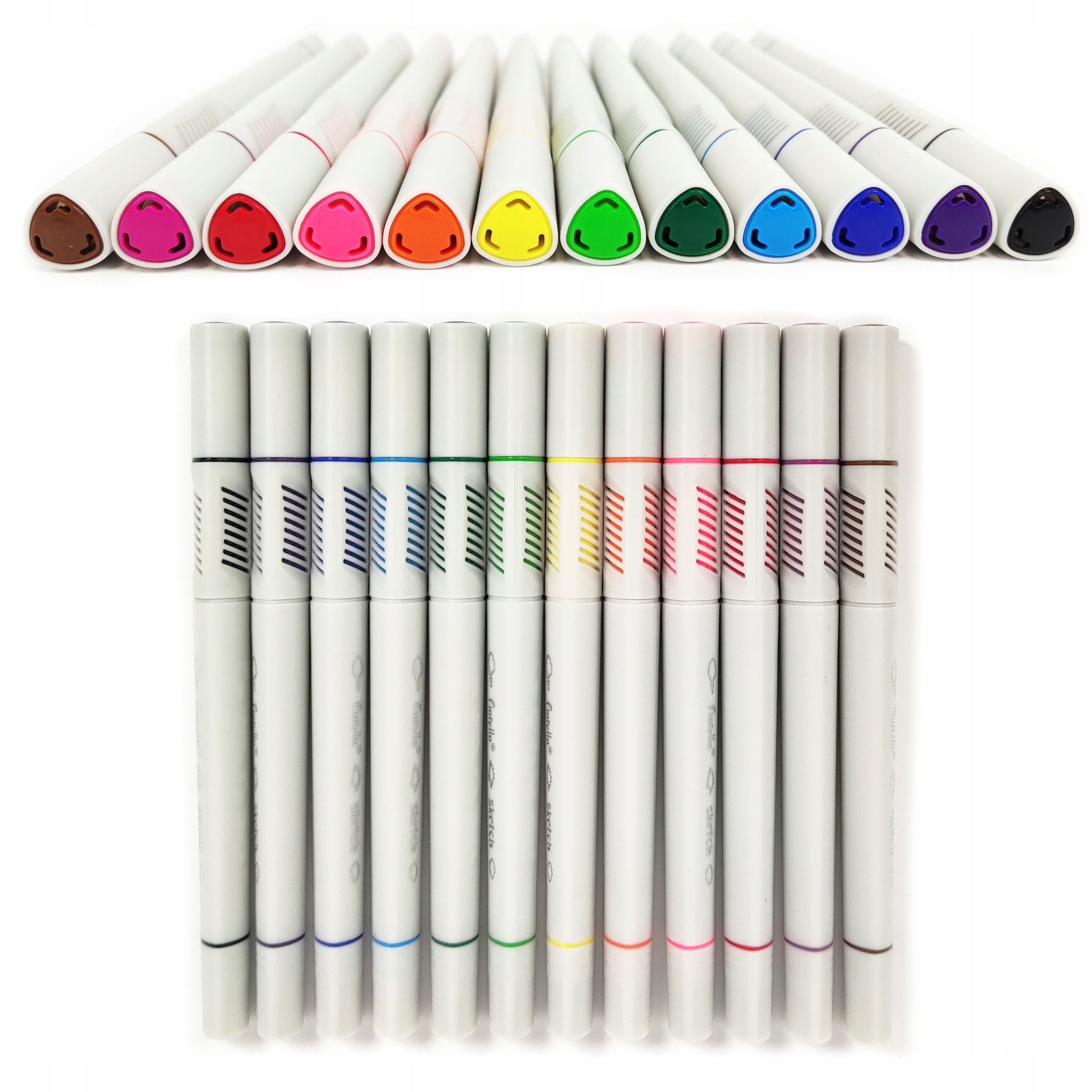 Posiadają podwójną koncówke: pedzelek + cienkopis. Koncówka pedzelkowa pozwala uzyskac ciągle, jednolite linie o róznej grubości. Cienka koncówka przeznaczona do cienkich linii i detali.