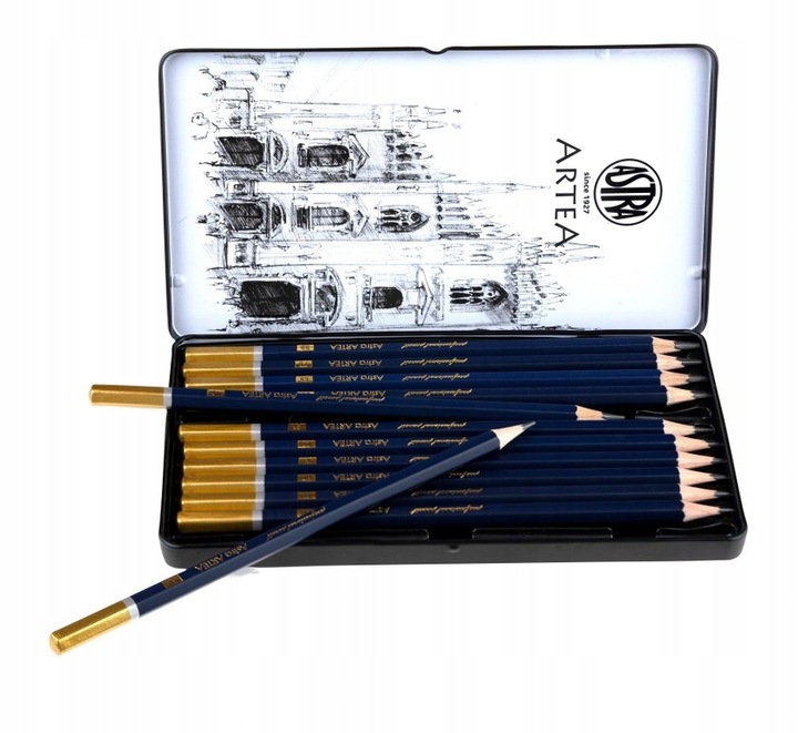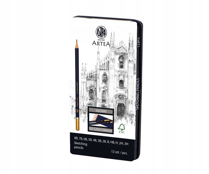 Zestaw ołówków od 8B do 3H 12 sztuk w metalowym pudełku 206120013 ASTRA, ARTEA - ol 0667003