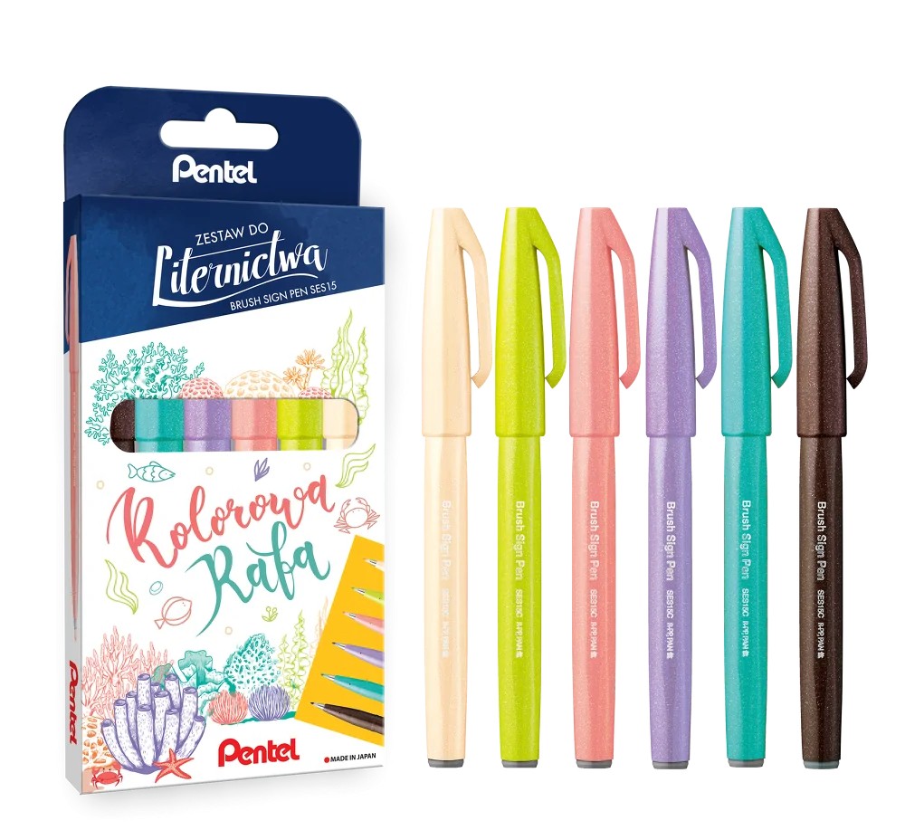 Pisak PENTEL BRUSH SIGN PEN kpl. 6 kolorów SES15C - pik0008059