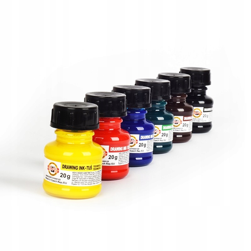 Tusze kreślarskie marki KOH-I-NOOR odznaczają sie trwalymi i zywymi kolorami odpornymi na światlo, bardzo dobrze i trwale lączą sie z podlozem.