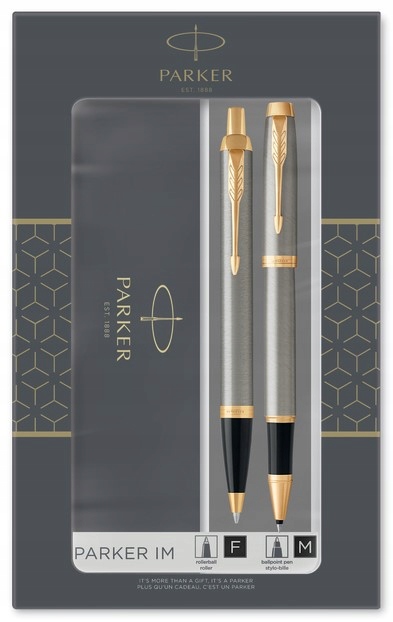 Zestaw upominkowy pióro i dlugopis Parker IM GT sklada sie z dwóch produktów piśmienniczych, które pieknie sie prezentują.