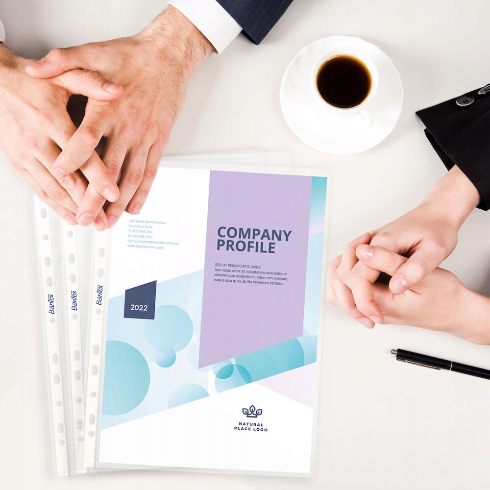 Uniwersalna perforacja pozwala na uzycie koszulek w kazdym segregatorze.