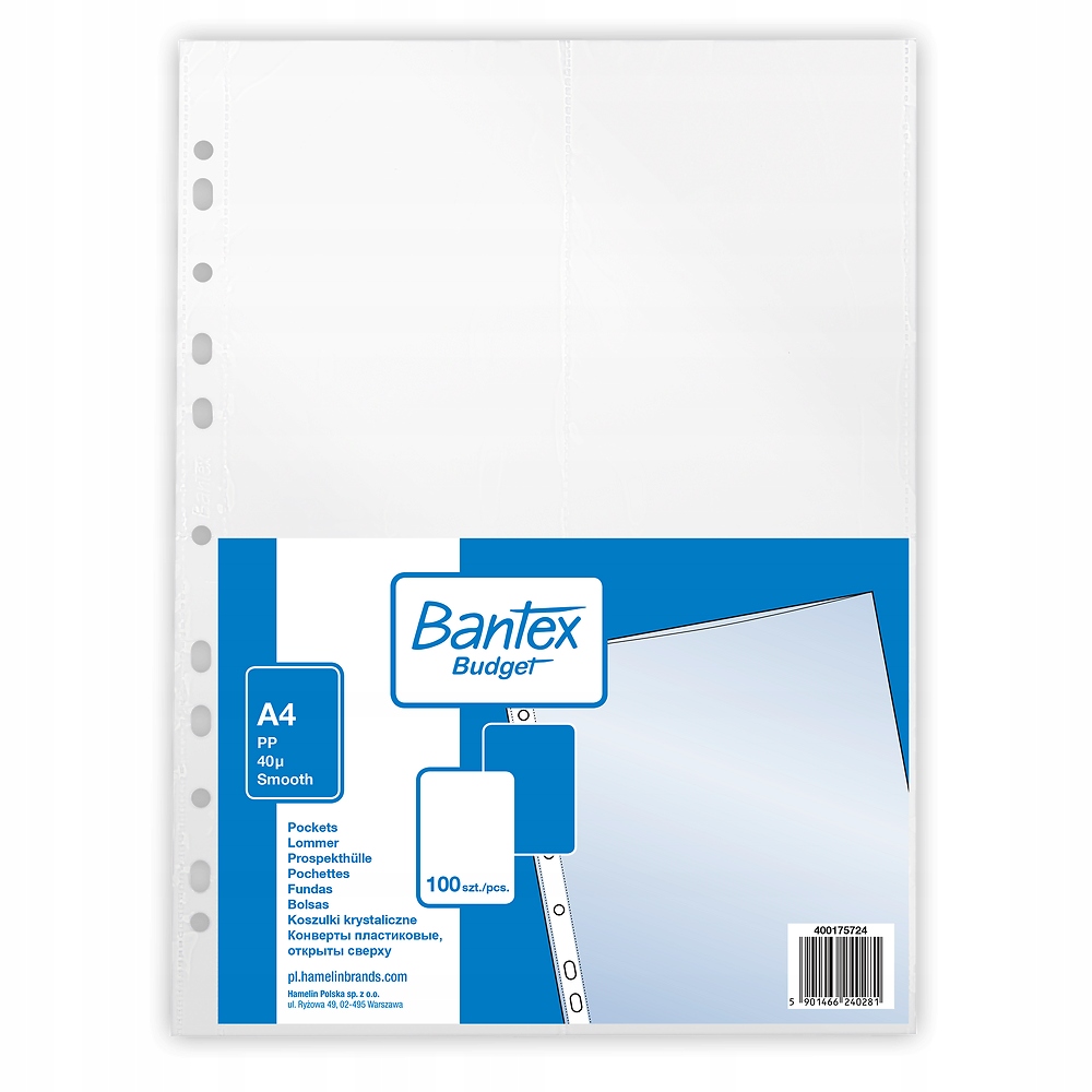 Koszulki krystaliczne na dokumenty A4 45mic 100 sztuk w pudełku 100550096 BANTEX - obk1950089