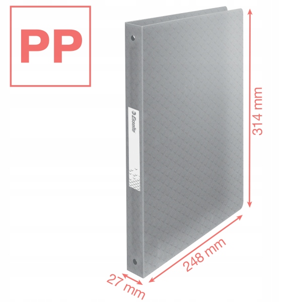 Wykonany jest z elastycznego, latwego do czyszczenia polipropylenu. Posiada 4 okrągle ringi, które umozliwiają latwe przewracanie stron oraz wygodne wyjmowanie i dokladanie kartek oraz etykiete na grzbiecie do opisu zawartości.