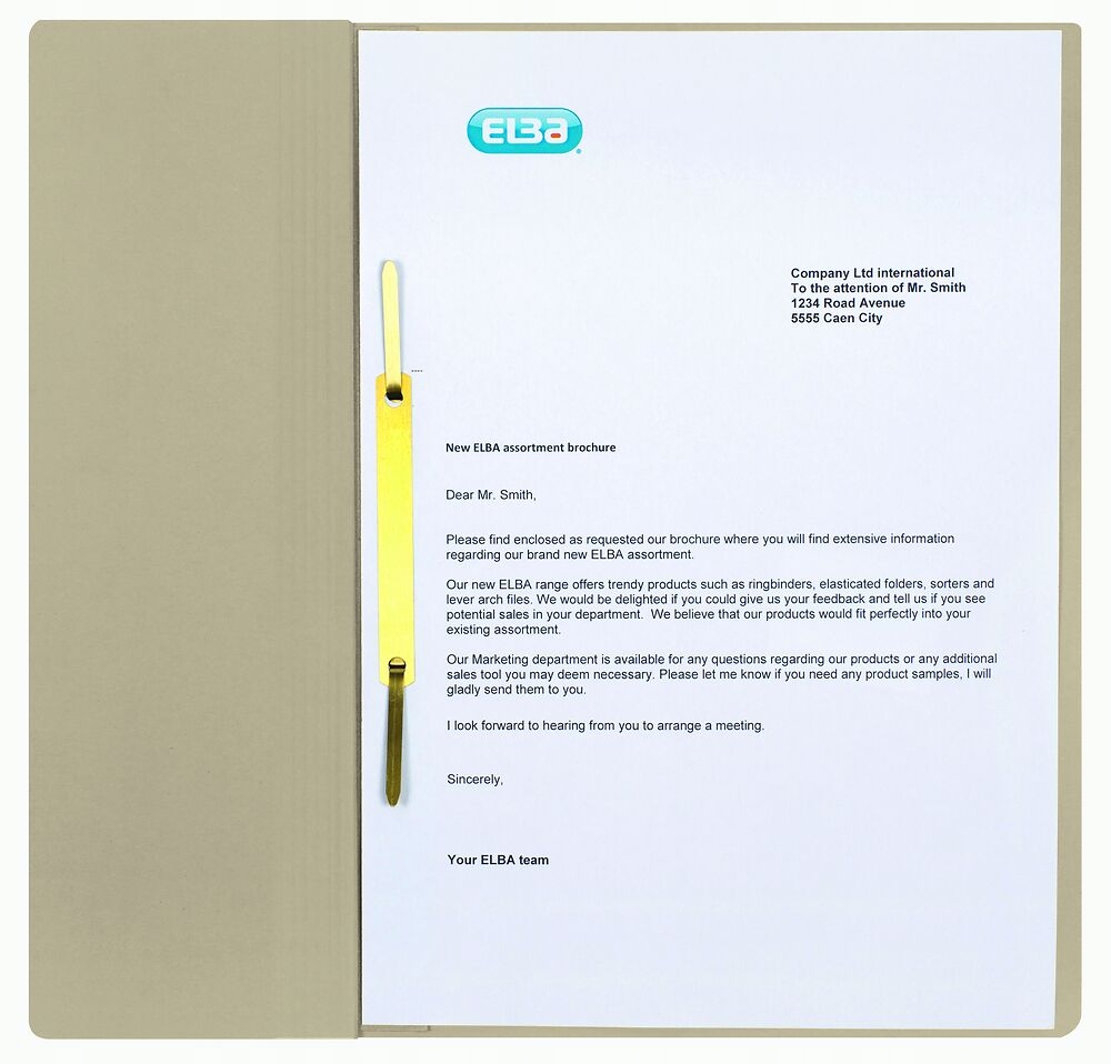 Skoroszyt A4 wykonany z kartonu Manilla barwionego w masie. Frontowa okladka zostala zmniejszona o polowe, dzieki czemu dokumenty są widoczne bez otwierania skoroszytu.