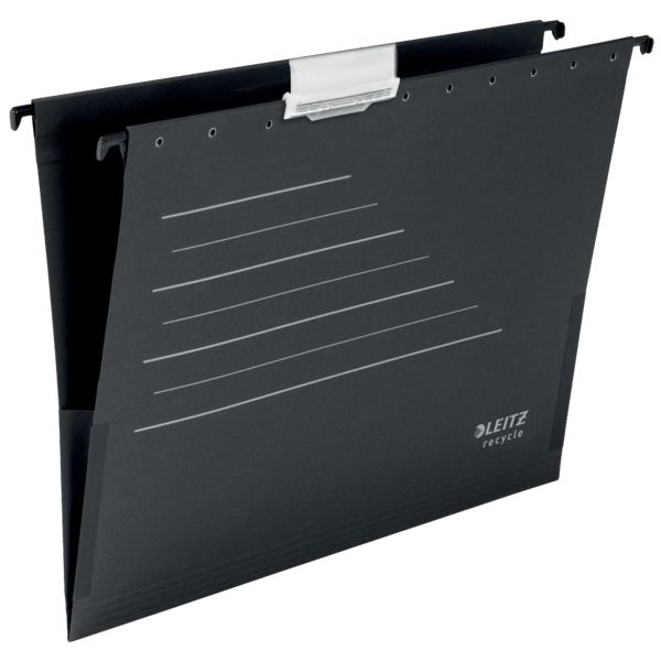 Najwyższej jakości atrakcyjna teczka zawieszana w kształcie litery "V", z bocznymi zakładkami, na dokumenty w formacie A4. Wykonana z kartonu pochodzącego w 100% z recyklingu, neutralna dla klimatu, w 100% nadająca się do ponownego przetworzenia, z certyfikatem środowiskowym Blue Angel. Zapewnij sobie uporządkowany i łatwy dostęp do dokumentów oraz wykorzystaj maksymalnie miejsce do archiwizacji dzięki możliwości pionowego zawieszania dokumentów. Mocne, trwałe zawieszki wytrzymają intensywne użytkowanie, a dołączony uchwyt na etykiety pomaga w porządkowaniu i identyfikacji zawartości. Ta solidna teczka zawieszana wykonana jest z jakością zapewniającą użytkowanie przez długie lata. Idealnie uzupełnia inne produkty z kolekcji Leitz Recycle, zawierającej nowoczesne i ekologiczne produkty biurowe świetnie prezentujące się w domu i w biurze. Dzięki nowej, przyjaznej dla środowiska linii produktów Recycle oferowanej przez firmę Leitz możesz polepszyć zarówno swoje środowisko biurowe, jak i całej naszej planety.