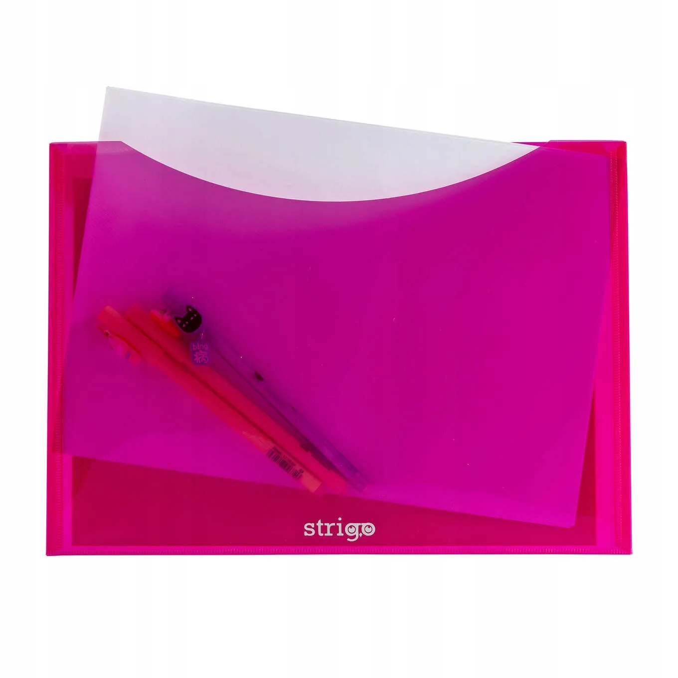 Teczka kopertowa PP A4 pozioma różowa 2kiesz. SF006 STRIGO - tek0006344