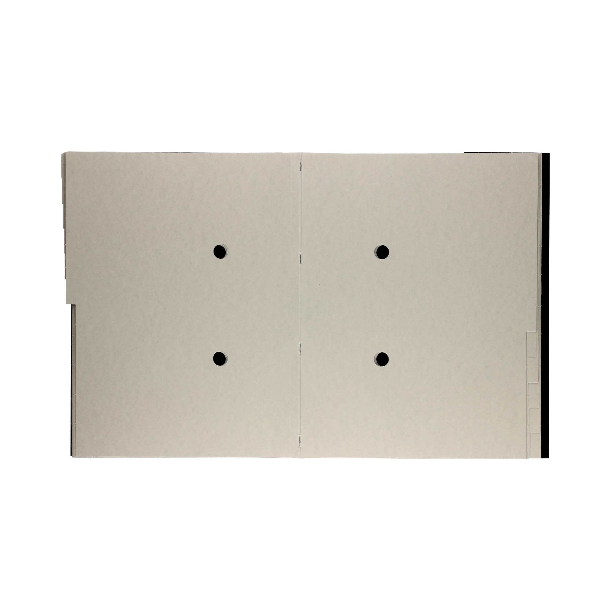 - Indeks na wewnętrznej stronie klapki oraz registry na przekładkach ułatwiają znalezienie określonego dokumentu