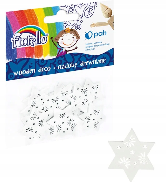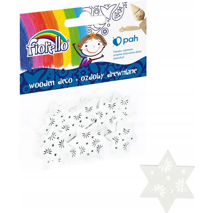 Drewniane gwiazdki Fiorello GR-WD811 to stylowy i uniwersalny dodatek do wszelkich prac kreatywnych. W zestawie znajduje się 15 ozdób w kolorze białym, o wymiarach 29 x 29 mm. Dzięki swojej klasycznej formie i neutralnej barwie świetnie sprawdzą się jako element dekoracyjny w projektach DIY, scrapbookingowych, świątecznych oraz dziecięcych.