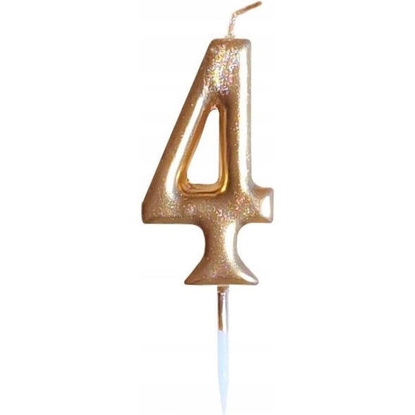 ŚWIECZKA urodzinowa CYFERKA 4 metaliczna zlota GO PARTY