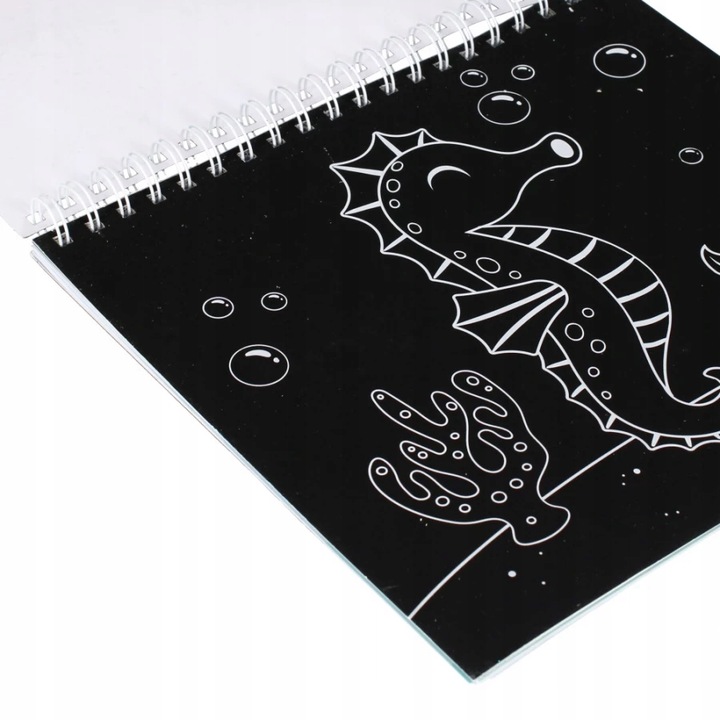 - notesu na spirali z szablonami z konturami do wydrapywania i kolorowania