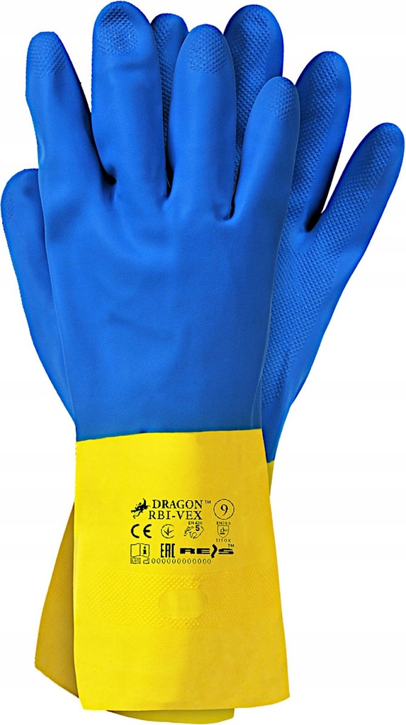 Rękawice REIS DRAGON RBI-VEX gumowe niebiesko-żółte roz.9/L - hr 0016340