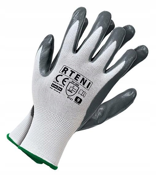 Rękawice REIS RTENI WS poliestrowe powlekane nitrylem biało-szare roz.7/S - hr 0036340