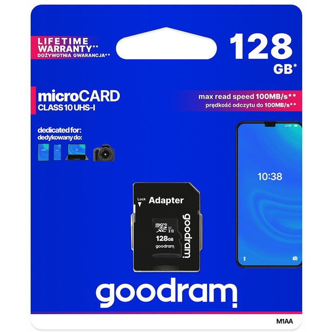 Karta pamięci MicroSD 128GB GOODRAM MicroSDXC Class10 UHS I + adapter M1AA-1280R12 - xu 0442544