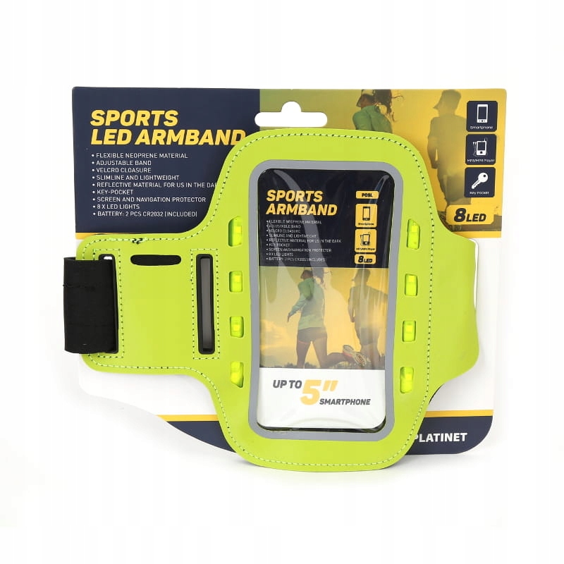 Etui/opaska na ramię do telefonu PLATINET z diodami led zielone (43707) - xz 0280047