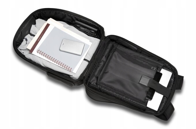 - Bezpieczna przegroda na laptopa z odpornym na przebicie zamkiem blyskawicznym zabezpiecza laptopa lub tablet przed kradziezą