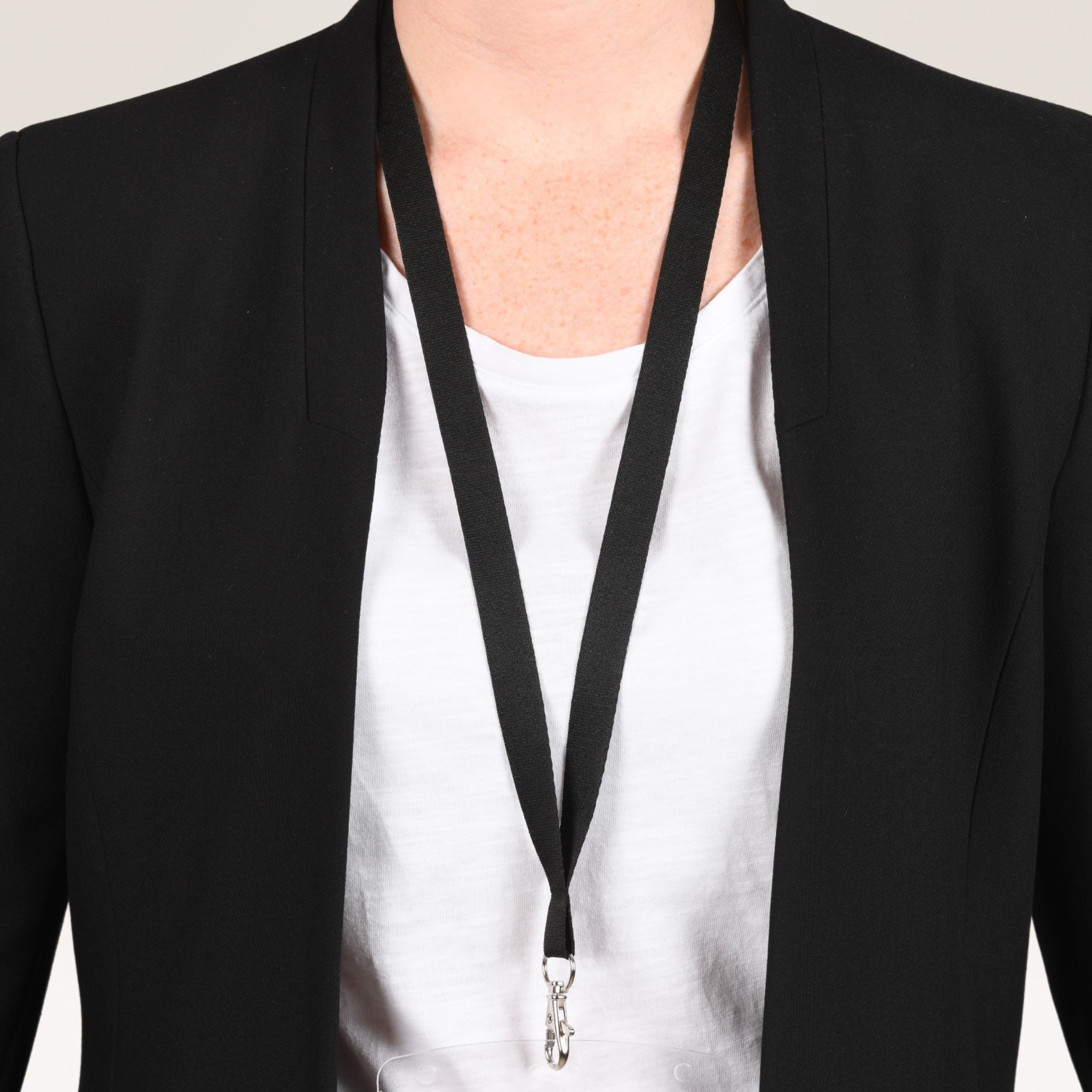 Czarne smycze o wymiarach: 15 mm szerokości i 440 mm długości, o kodzie 4842N od Avery są idealne na konferencje, seminaria i różnego rodzaju imprezy firmowe lub prywatne. Doskonale nadają się także do zaczepiania kluczy. Taśma smyczy jest wykonana z 100% recyklingowanego PET (rPET). Smycze posiadają bezpieczne wypięcie i obrotowy karabińczyk do zaczepienia holderów na identyfikatory lub do kluczy. Smycze są miękkie w dotyku, co zapewnia ich wygodne noszenie. W asortymencie Avery można znaleźć również smycze w innych kolorach oraz wzorach, a także pasujące do nich holdery, wkłady i inne produkty z działu identyfikatorów. Opakowanie zawiera 10 smyczy.