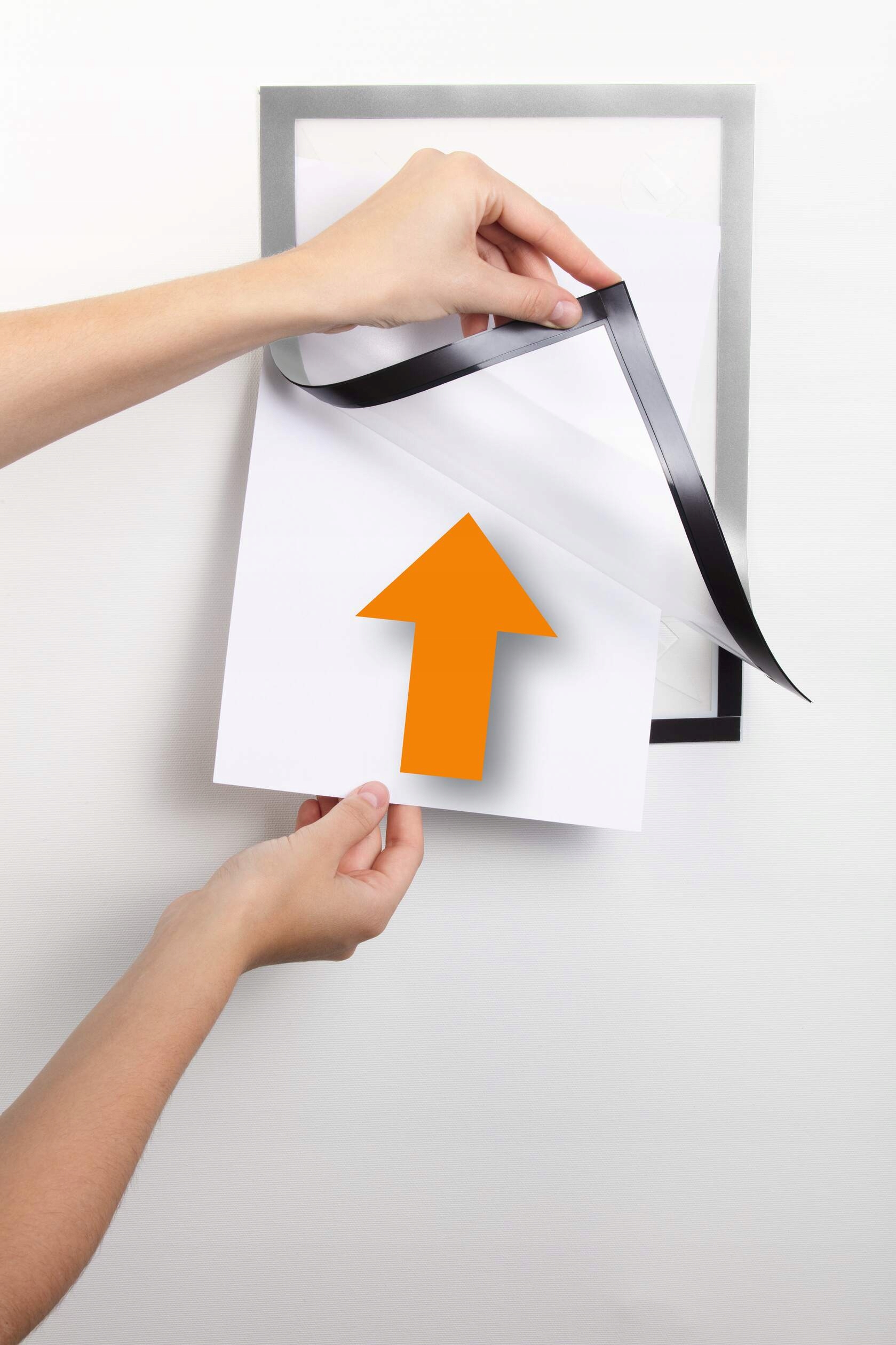 - Uchylna magnetyczna ramka umozliwia szybkie umieszczanie i wymienianie dokumentów.