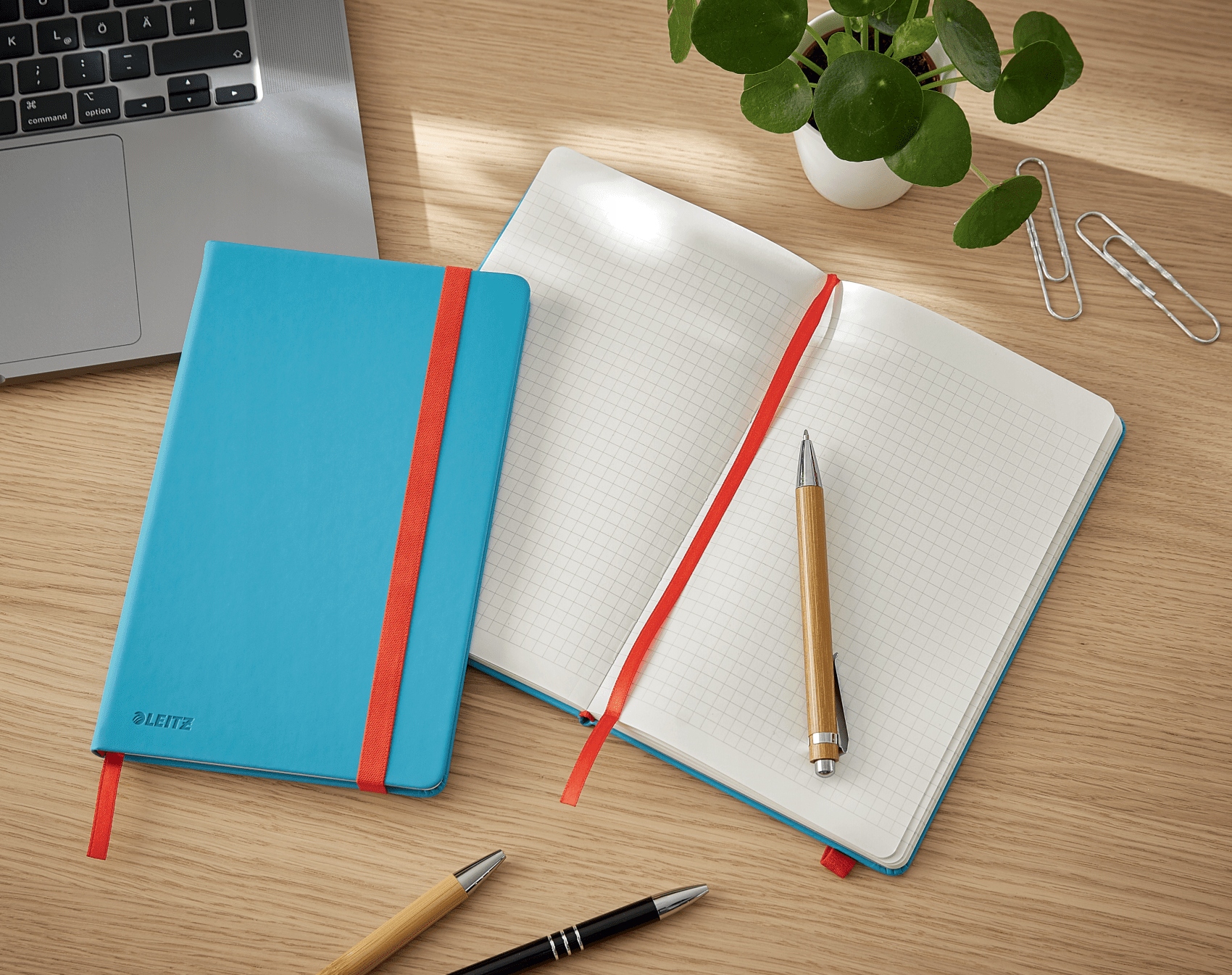 Notatnik Leitz Cosy Soft Touch w formacie A5 i twardej oprawie doskonale sprawdzi sie do robienia codziennych notatek i wygodnie zmieści sie w torebce lub torbie na laptopa. Ten najwyzszej jakości notatnik jest idealnym dodatkiem do domu lub biura, zapewniając Ci wygodną i efektywną prace przez caly dzien.