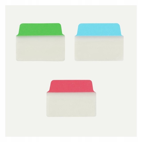 - Posiadają przezroczystą cześc, po której mozna pisac oraz kolorową zakladke