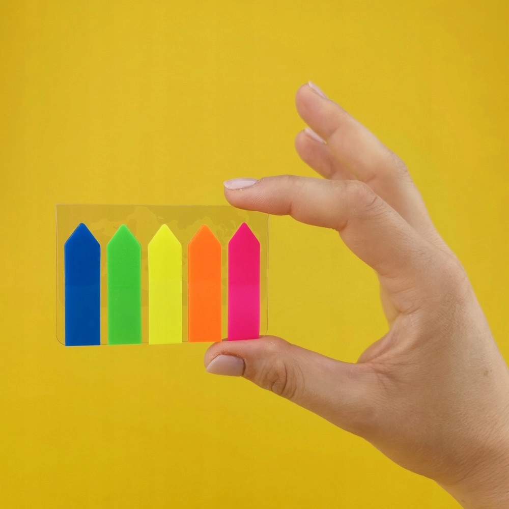 - Kazdy komplet to 5 neonowych kolorów po 25 zakladek.