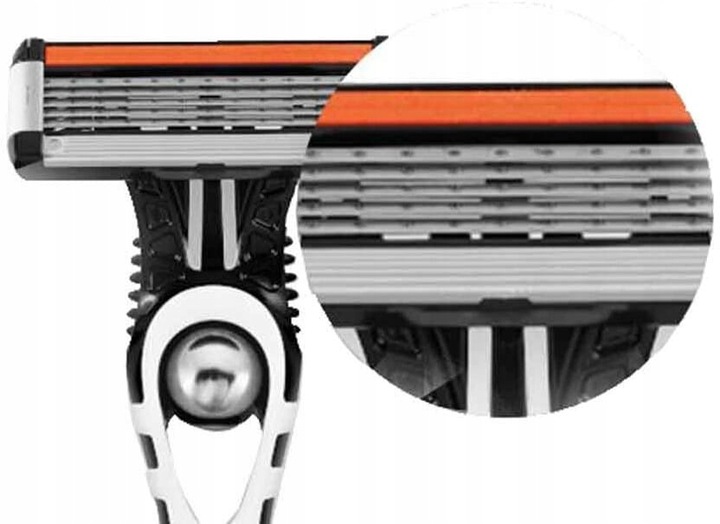 Pięć ruchomych ostrzy nano-tech indywidualnie dopasowuje się do każdej krzywizny twarzy i unosi każdy włosek, co zapewnia niezwykle dokładne golenie i szybkie spłukiwanie ostrzy.