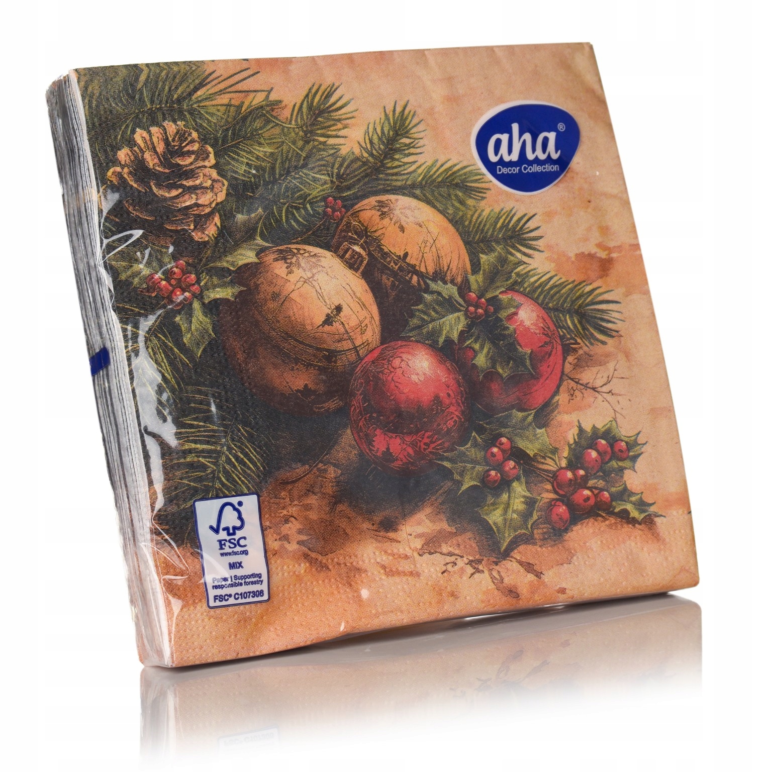 Serwetki świąteczne na Boże Narodzenie Święta 33x33cm papierowe 20 sztuk BN-138 AHA