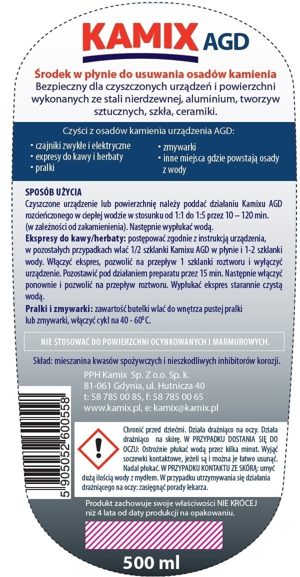 Preparat do usuwania kamienia KAMIX AGD odkamieniacz w płynie 500ml - hpk0012084