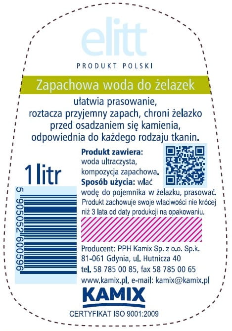 Woda destylowana ultraczysta z dodatkiem zapachowym odpowiednia do stosowania do żelazek pracujących na wodzie destylowanej ale także dla tych pracujących na wodzie wodociągowej w przypadku wody twardej i bardzo twardej (gdy producenci żelazek zalecają zmieszanie wody destylowanej z wodociągową).