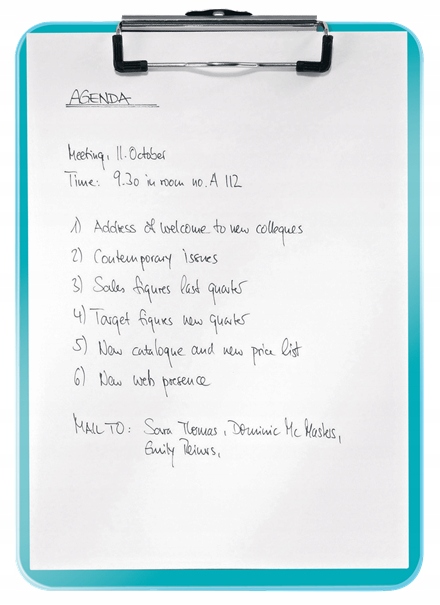 - Mocny metalowy klips bezpiecznie trzyma kartki