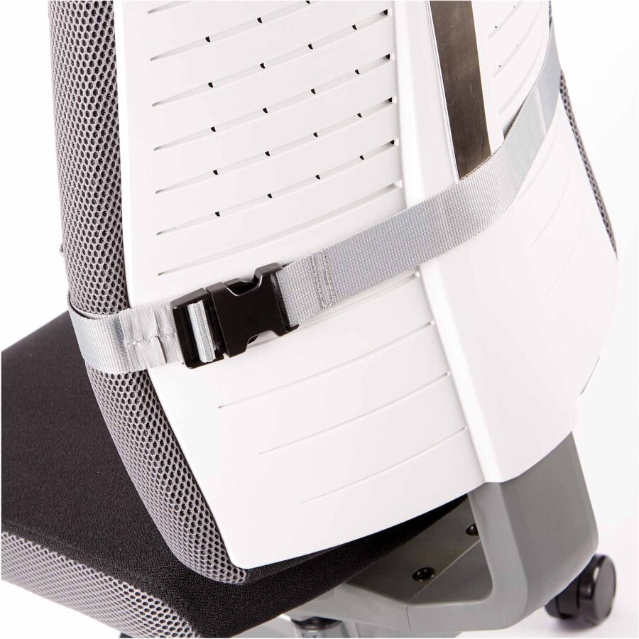 - Regulowany pasek z klamrą pozwala umieścić podpórkę dokładnie na wysokości odcinka lędźwiowego.