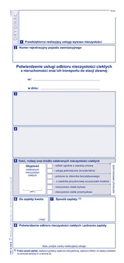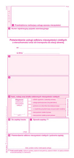 S-105-8 Potwierdzenie usługi odbioru nieczystości ciekłych oraz ich transportu do stacji zlewnej MICHALCZYK I PROKOP