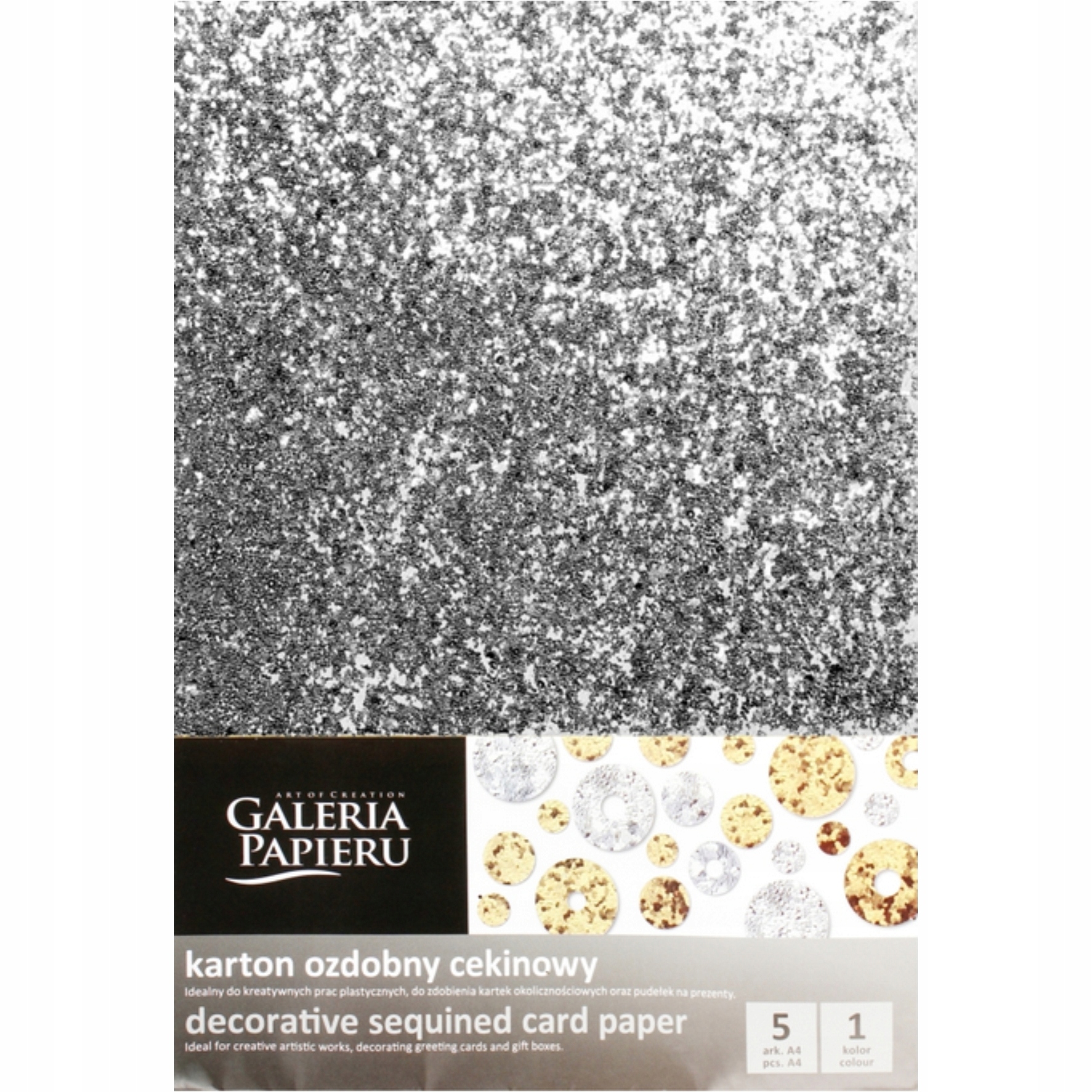 Karton ozdobny cekinowy A4 srebrny 210g. (5ark.) 208505 Galeria Papieru, ARGO - ka 0184340