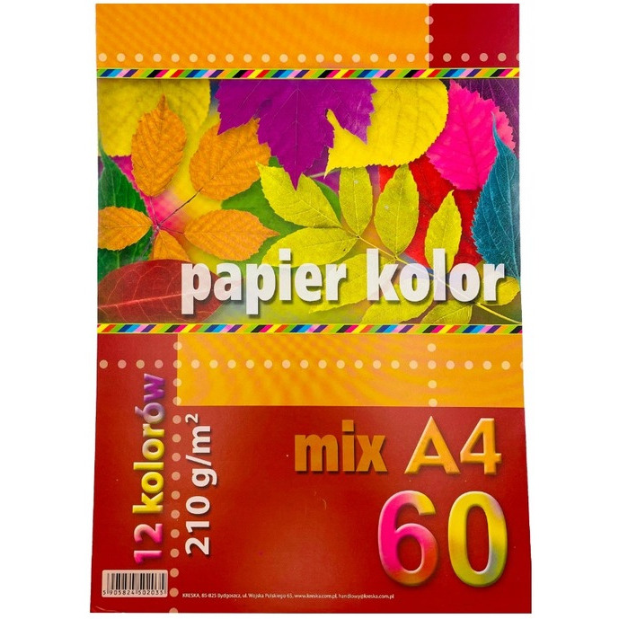 Papier A4 kolorowy mix 12 kol. 210g (60ark) KRESKA - pa 0012302