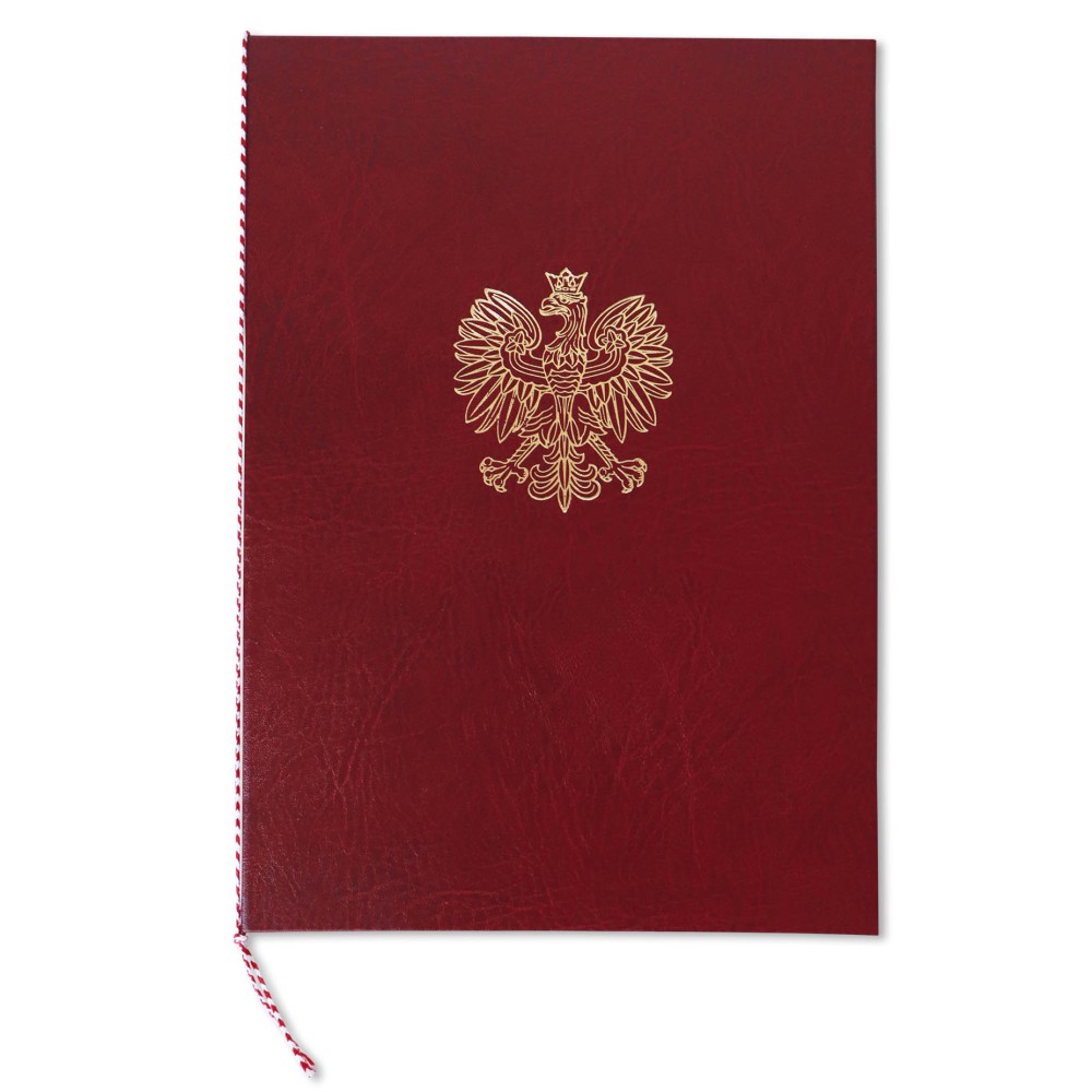 - Na okładce umieszczony jest złocony orzeł, wykonany metodą tłoczenia na gorąco.