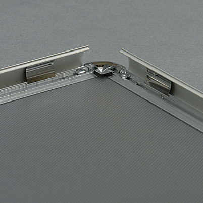 Aluminiowa rama w kolorze srebrnej anody, zawierająca system zatrzaskowy OWZ. Ramka wyposażona w elastyczną folię antyrefleksyjną z filtrem UV o grubości 0,5 mm, która tłumi refleksy światła, chroniąc plakat przed blaknięciem. Tylna ściana wykonana z trwałego i odpornego na pęknięcia materiału. Do nadruku grafiki polecamy użycie papieru plakatowego 150 g.