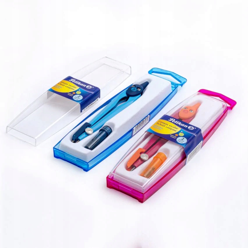 - Klasyczny szkolny cyrkiel w zestawie z dodatkowymi rysikami.