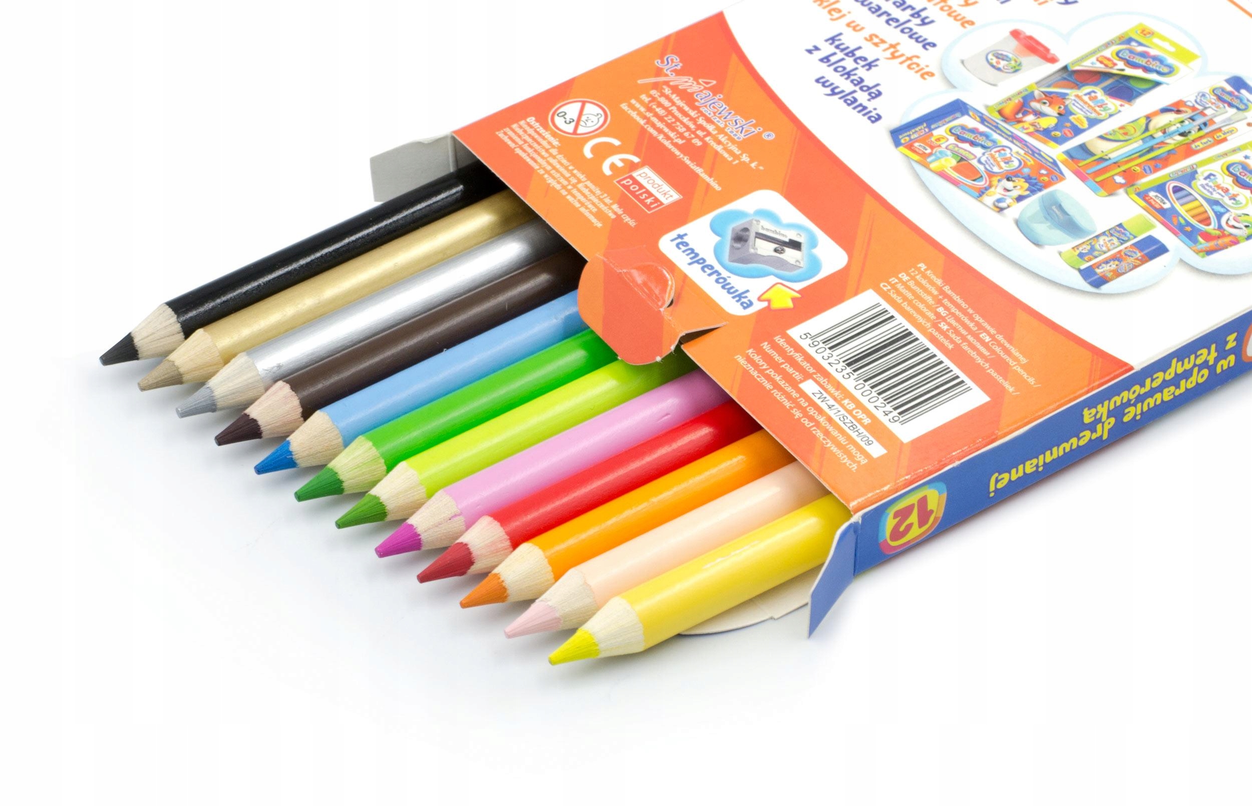 - Zestaw zawiera 12 sztuk kredek i temperówke.