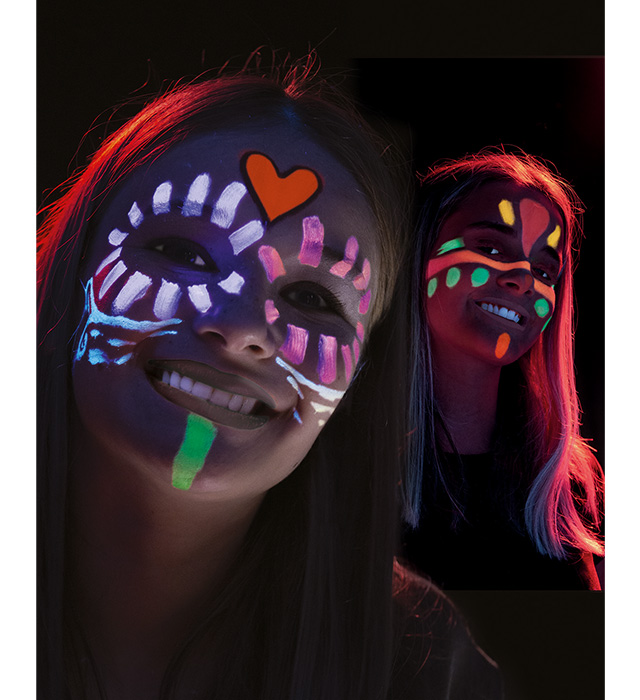 Kredki do malowania twarzy w fluorescencyjnych kolorów, które świecą w świetle UV!