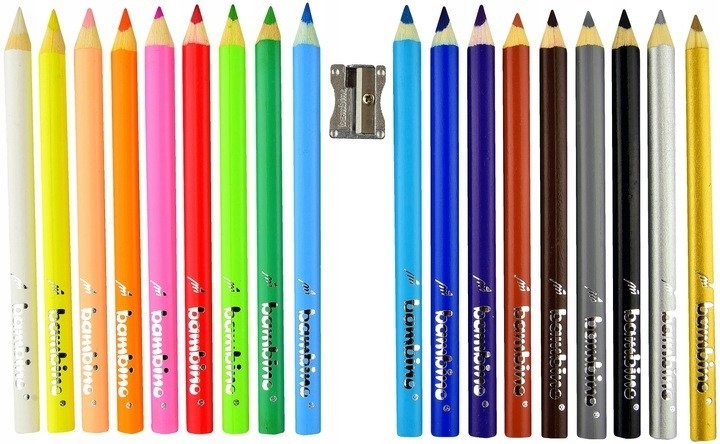 Kredki olówkowe 18 kolorów + temperówka BAMBINO