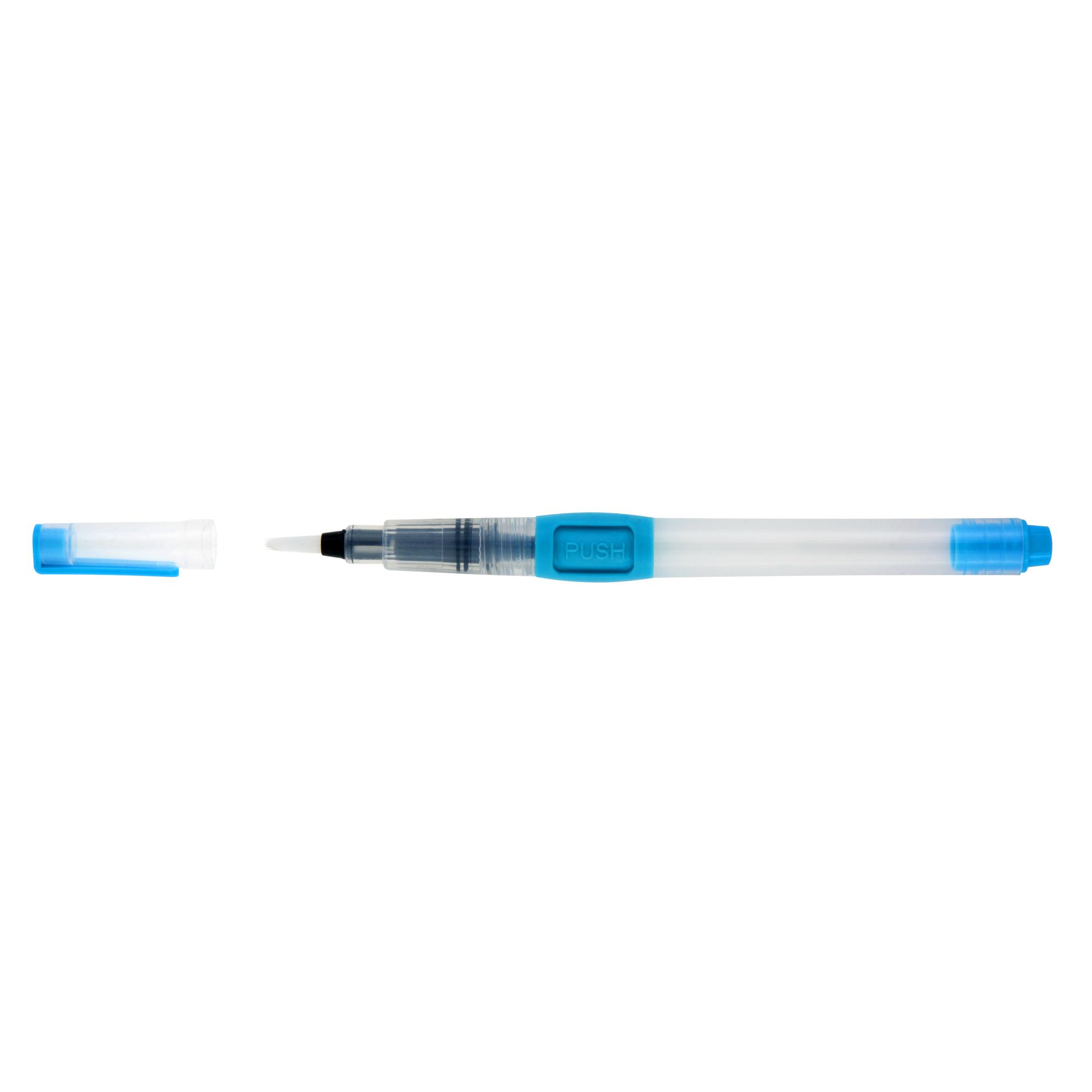 Pędzelek wodny (Water Brush) znajdzie zastosowanie zarówno przy malowaniu farbami wodnymi jak i kredkami akwarelowymi czy pastelami. Posiada końcówkę wykonaną z miękkiego, syntetycznego włosia co pozwala na delikatne i dokładne prowadzenie linii. Pędzelek ma duży - 8ml zbiorniczek na wodę, dzięki czemu można go wykorzystać nie tylko w domu, ale również przy malowaniu w plenerze. Dodatkową zaletą jest specjalny dozownik pozwalający na rozprowadzenie odpowiedniej ilości wody. Produkt dostępny jest w dwóch wariantach: z cienką okrągłą końcówką, oraz średnią płaską w rozmiarze M.