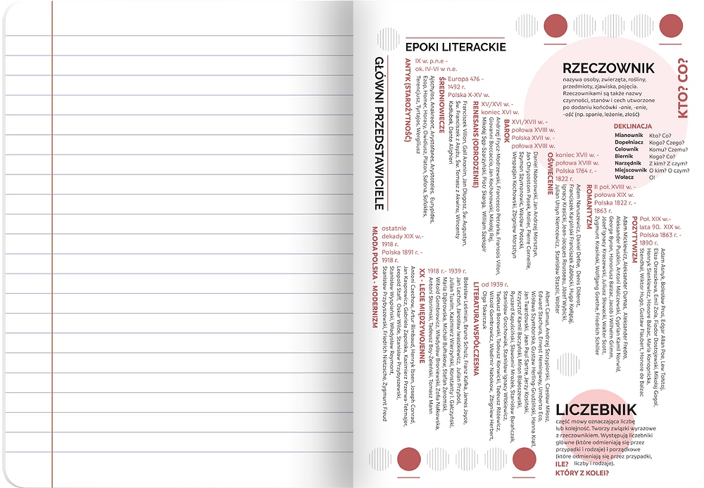- Ściągi na wewnetrznych stronach okladek pomagają w nauce i przyswajaniu materialu.