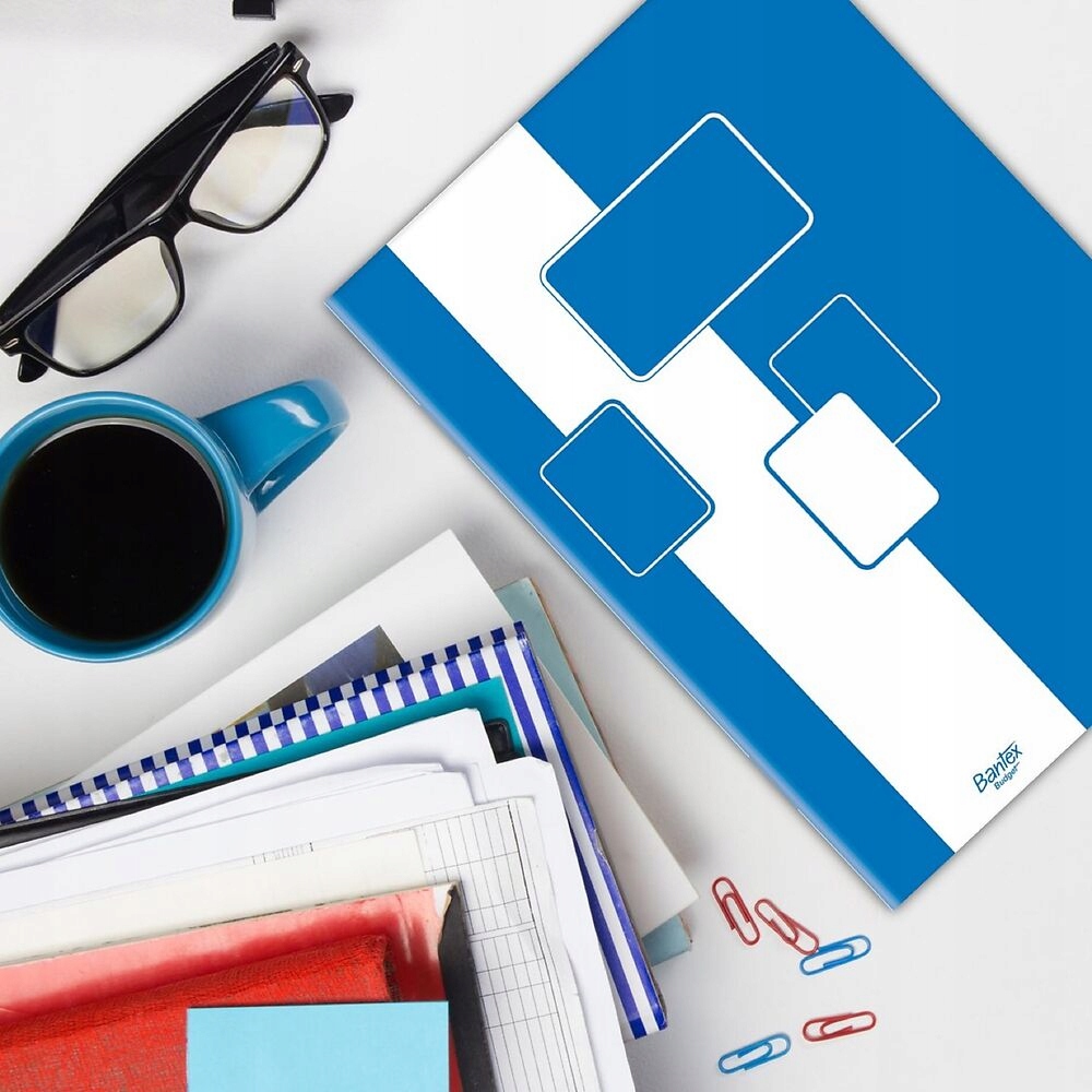 Funkcjonalne, lekkie zeszyty w kratke z marginesem. Bialo-niebieska okladka zostala pokryta lakierem dyspersyjnym. Fioletowa liniatura z czerwonym marginesem. Zszywany grzbiet zapewnia wygode uzytkowania oraz trwalośc zeszytów.